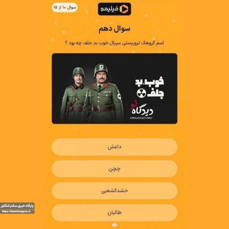 به گزارش پایگاه خبری تحلیلی سلام کنگاور؛ طی ساعات اخیر، تصویری از سری سوالات مربوط به مسابقهای موسوم به گنج از فیلیمو در حال وایرال شدن در فضای مجازی است؛ که در آن تصویری نمایش داده شده و سوالی مطرح گردیده و در بین گزینههای جواب هم «حشدالشعبی» از طرف فیلیمو گروه تروریستی خوانده شده است.