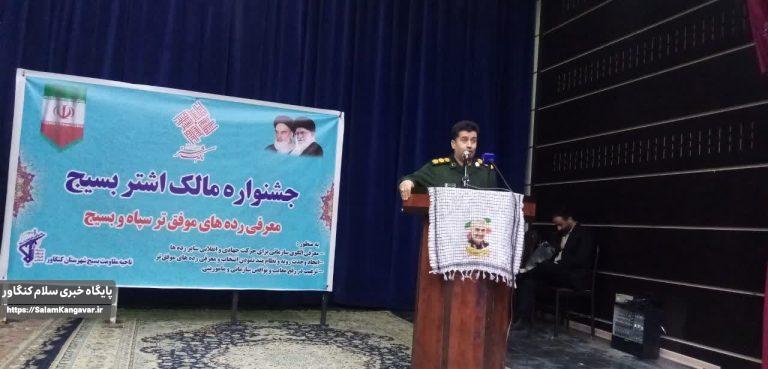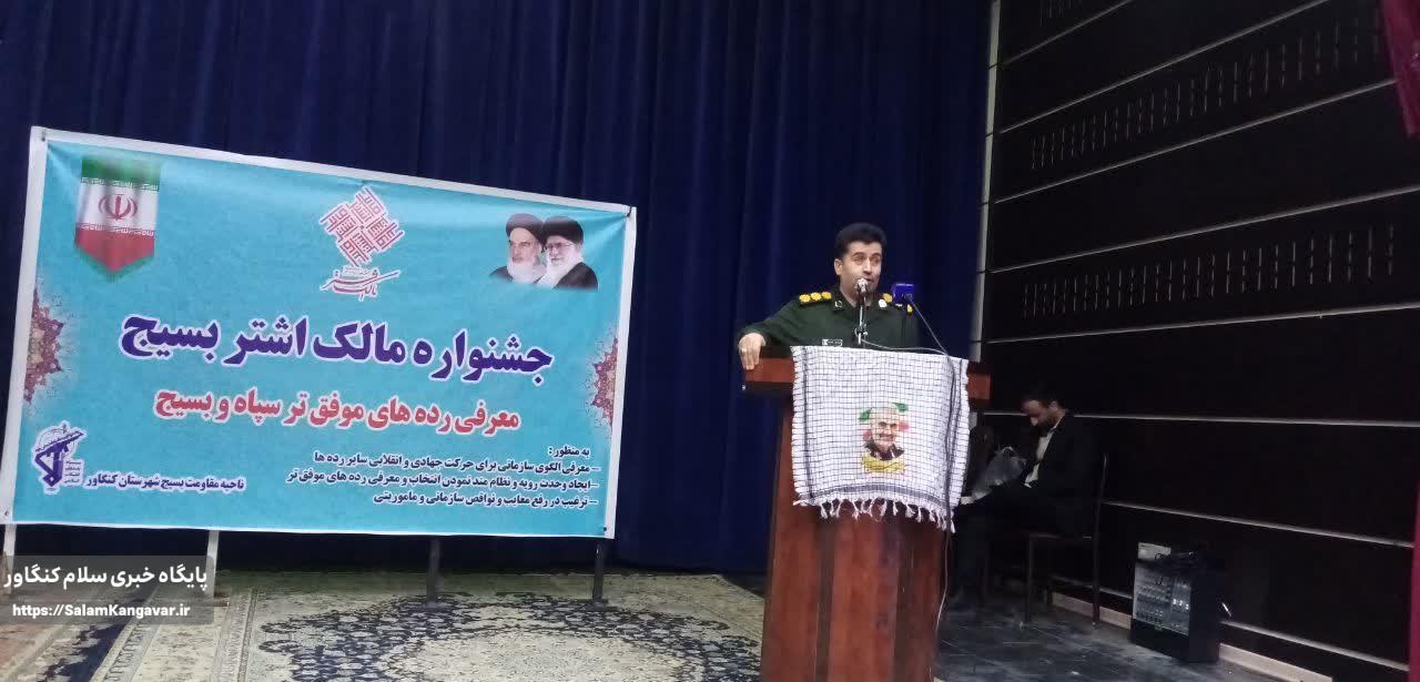فرمانده ناحیه مقاومت بسیج کنگاور اذعان داشت : امروز الگوهای موفق گروههای جهادی هستند که برای مقام معظم رهبری صف آرایی میکنند زیرا امروز امر، امر ولی ماست و برای رسیدن به قله و حکومت جهانی باید با جان و دل با مقام معظم رهبری بیعت کنیم.