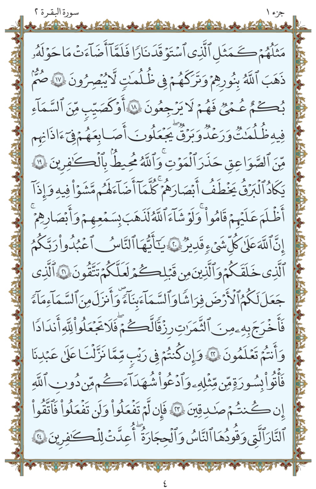 جزء یکم قرآن سوره بقره صفحه۴
